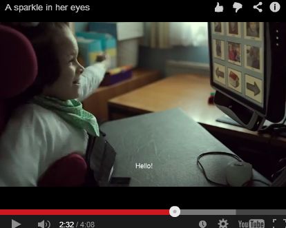 On la voit commencer à utiliser un ordinateur avec commande oculaire, avec succès, émotion et pertinence.
